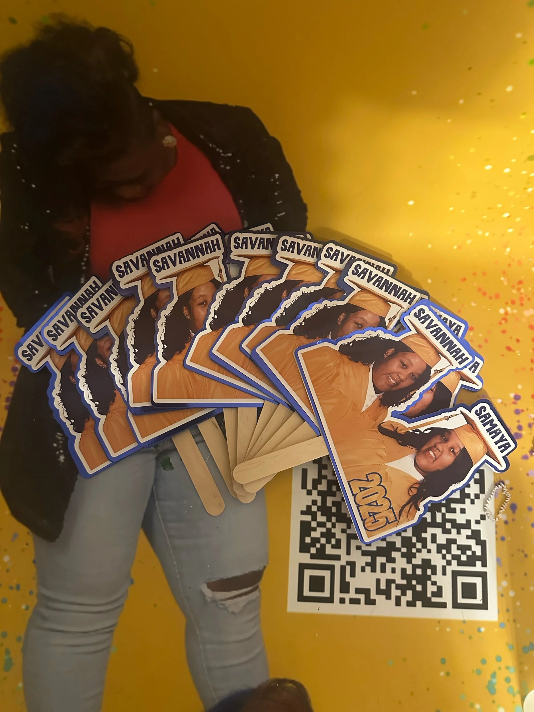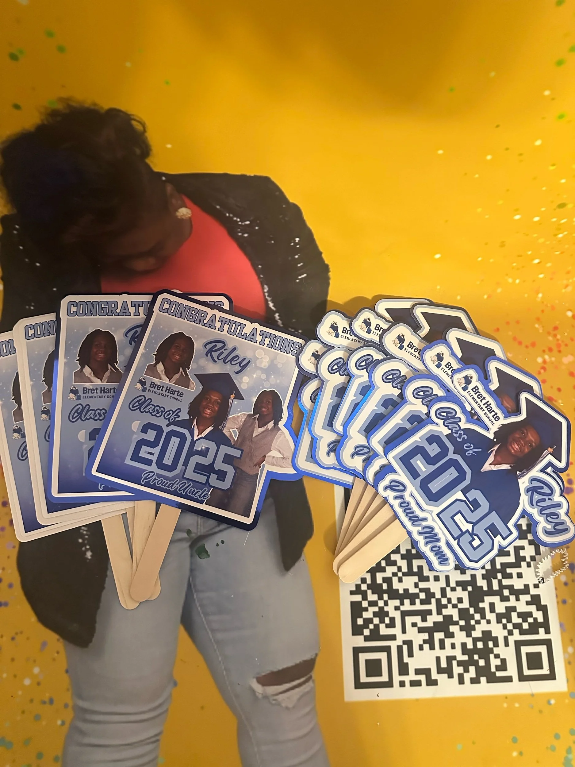 Celebrate in style! Perfect for graduations, birthdays, proms, and special events — these custom fans add personality and keep guests cool.